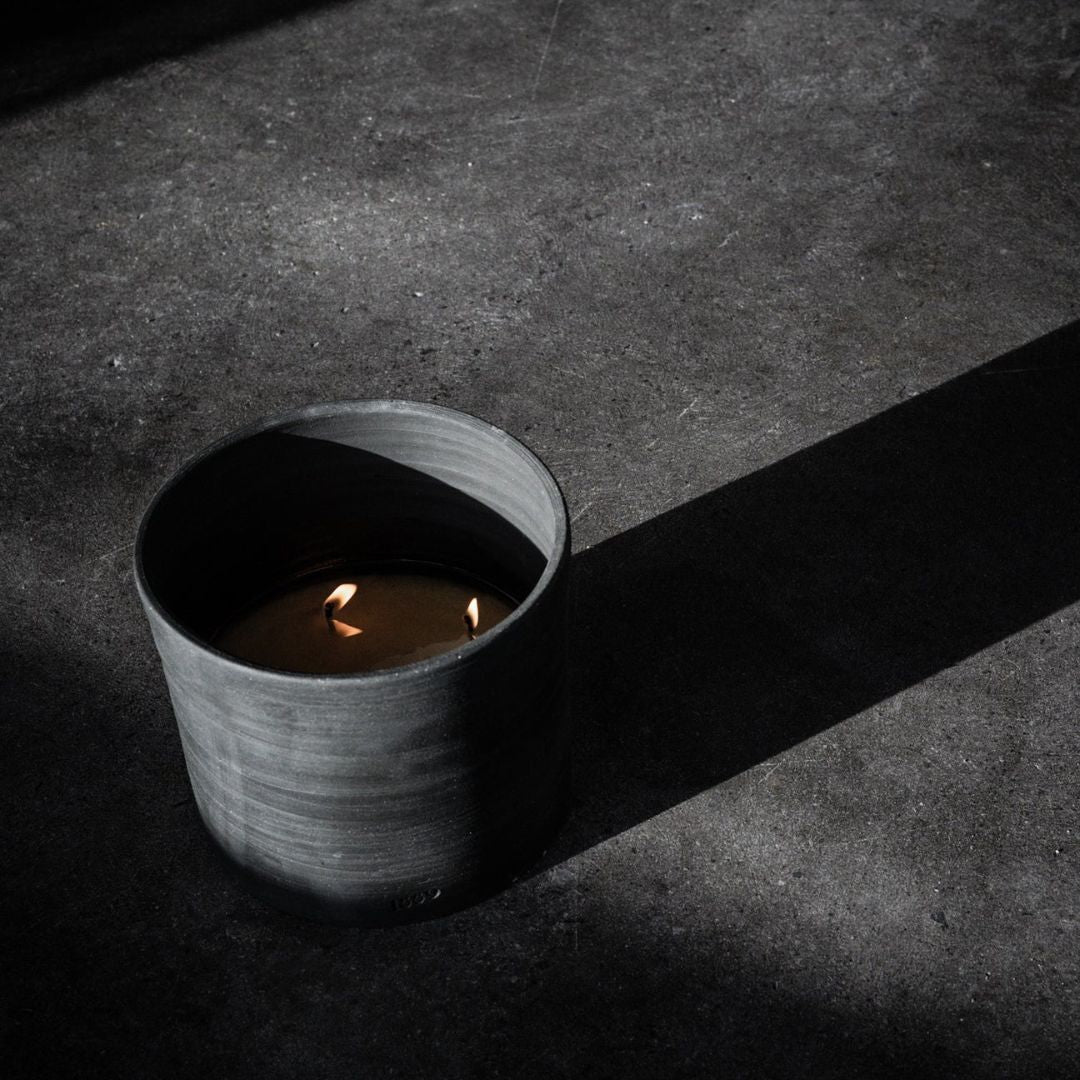 Minimalist designer candle by 1889 Wax Lighting evoking midnight city mood