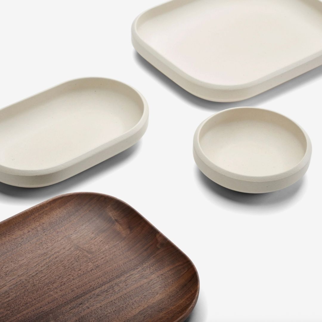 Available in three shapes — rectangular, oval, and round — the collection is equally suited to everyday meals and considered presentation. Honest materials, balanced proportions, and nothing superfluous.